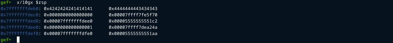 We can see that our buffer also starts at 0x7fffffffdeb0